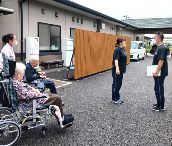 午後からは、入居者様を交えて避難訓練を実施しました。