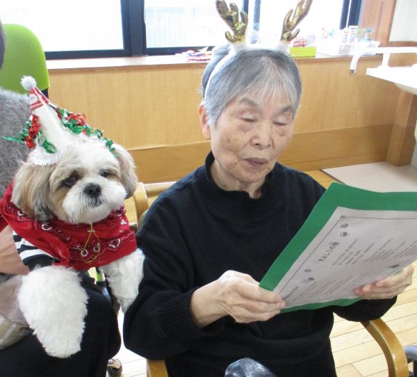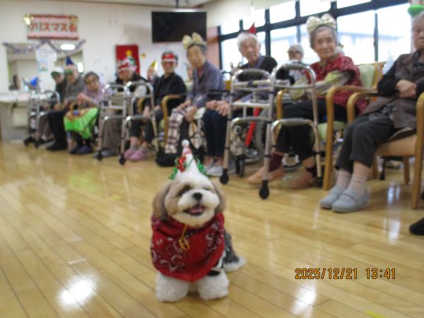 演奏会の後は、飛び入りでセラピー犬のむぎや