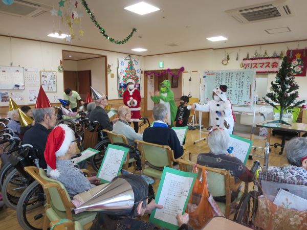 「きよしこの夜」「ジングルベル」などのクリスマスにちなんだ、歌を全員で歌ました。