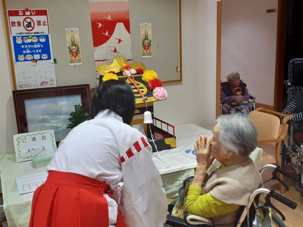 スタッフが巫女さんに扮したり、着物を着て新年らしいひとときを過ごしてもらいました。
