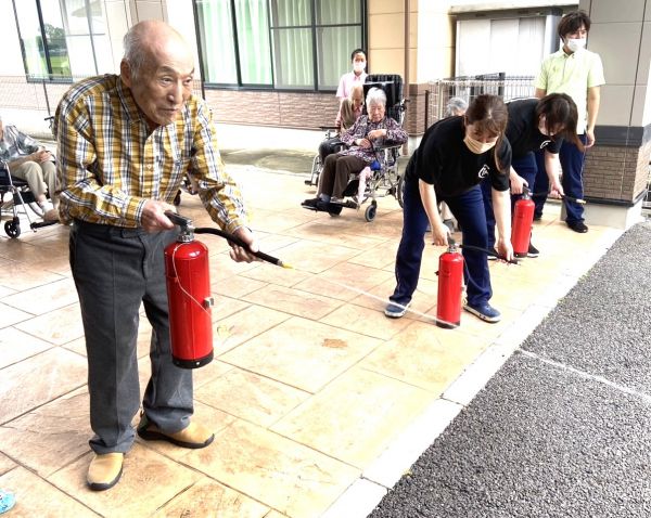 午後からは、入居者様を交えて避難訓練を実施しました。