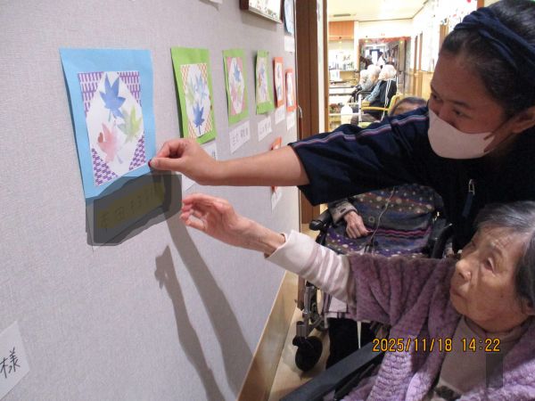 入居者様も他の方の作品を観て「これは、良い色使いだね~!」等と